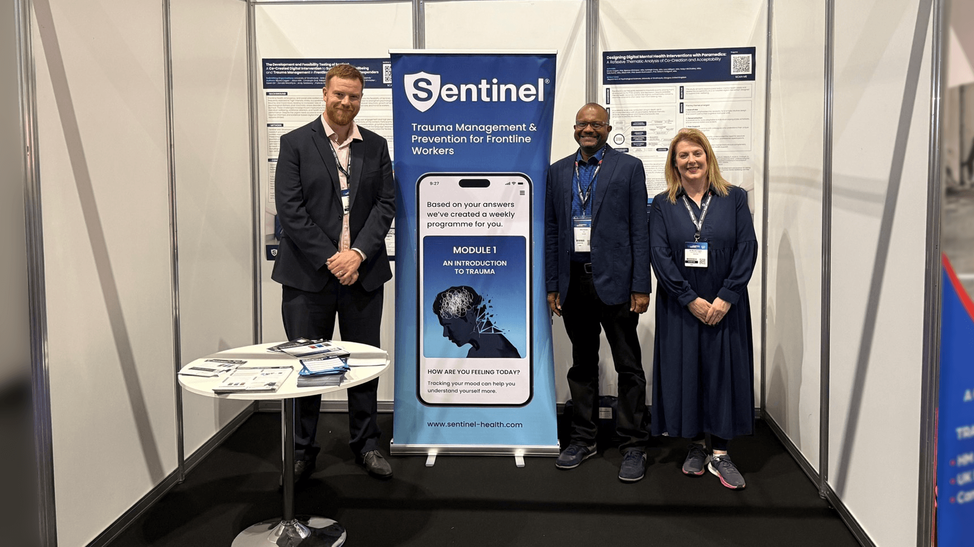 Our stand featured Sentinel’s trauma-informed digital support tools, including research posters, co-creation findings, and an interactive display of our personalised weekly modules. Visitors explored how Sentinel supports those who experience persistent traumatic stress and learned more about the evidence base underpinning our approach.
